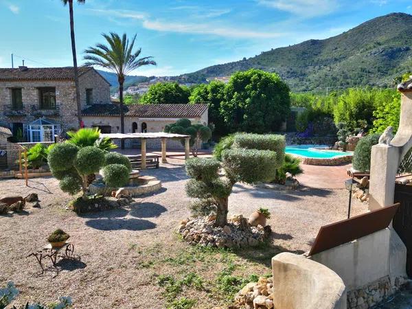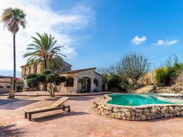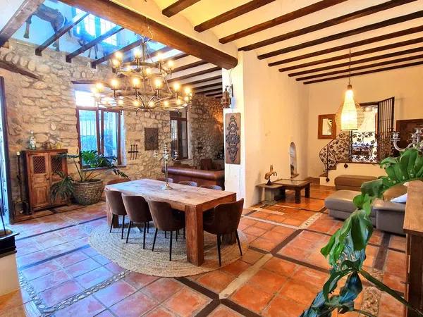 Discover a charming rustic villa in Jalon/Xalo, Alicante, which combines traditional charm with modern comforts. Built in 1948 and renovated in 2020, it offers stunning mountain and city views. With 500 square meters of living space on a 2157 square meter plot, this villa features 6 bedrooms and 4 bathrooms, making it ideal for a large family or as a holiday residence.