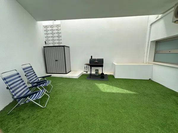Upon entering on the upper floor, you are welcomed by a bright and inviting hall, along with a well-appointed office space. The main floor boasts a spacious living room, a guest toilet, and a modern kitchen with convenient access to a laundry room and a charming patio. The master bedroom, complete with a dressing room and en-suite bathroom, also resides on this floor, providing direct access to a terrace with a beautiful swimming pool, perfect for moments of relaxation.