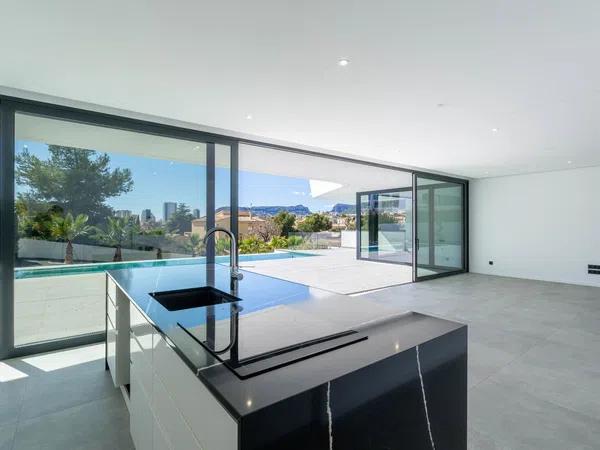 This modern villa is located in a privileged area of Calpe, just 15 minutes walk from the beautiful white sandy beach Poniente Arenal Bol and all amenities. The property sits on a corner plot of 920m2 and consists of 303m2 distributed over 2 floors. This fabulous property stands out for its excellent qualities and finishes and a functional layout.
