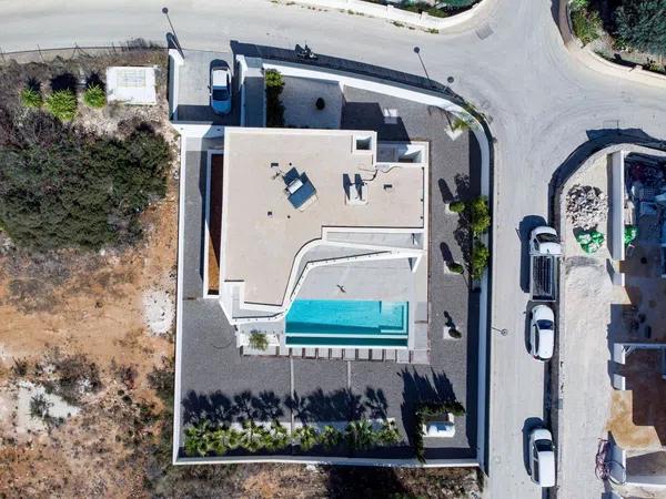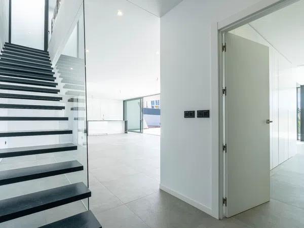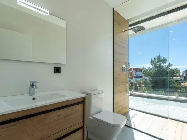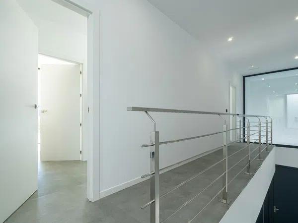 The ground floor contains a large open-plan space (57,45m2) comprising the living-dining room and the fully-equipped modern kitchen. On this floor there is also a spacious bedroom (24m2) with en-suite bathroom, a guest toilet and adjacent to the kitchen a laundry room. The outdoor area enjoys a magnificent infinity pool of 59,55m2, veranda with built-in barbecue and open terrace to enjoy the sun.